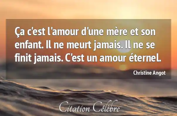 Ça c'est l'amour d'une mère et son enfant. Il ne meurt jamais. Il ne se finit jamais. C'est un amour éternel.