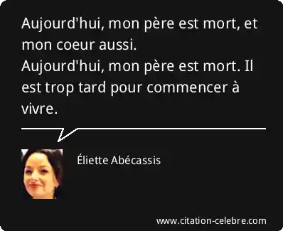 Aujourd'hui, mon père est mort, et mon coeur aussi.Aujourd'hui, mon père est mort. Il est trop tard pour commencer à vivre.