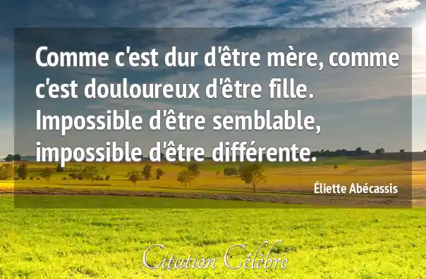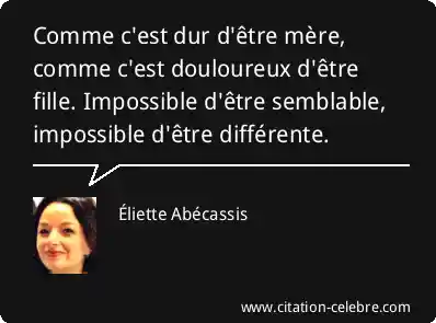 Comme c'est dur d'être mère, comme c'est douloureux d'être fille. Impossible d'être semblable, impossible d'être différente.