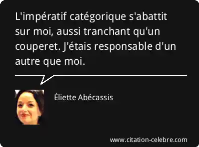 L'impératif catégorique s'abattit sur moi, aussi tranchant qu'un couperet. J'étais responsable d'un autre que moi.