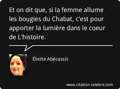 Et on dit que, si la femme allume les bougies du Chabat, c'est pour apporter la lumière dans le coeur de L'histoire.