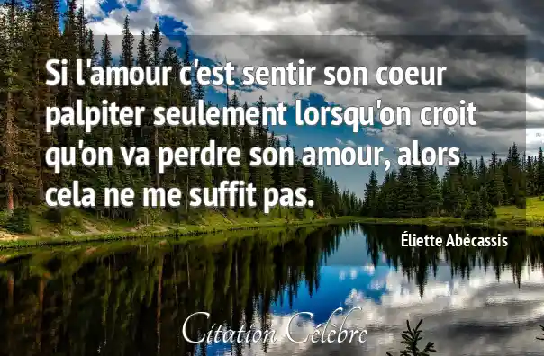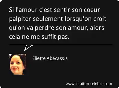 Si l'amour c'est sentir son coeur palpiter seulement lorsqu'on croit qu'on va perdre son amour, alors cela ne me suffit pas.