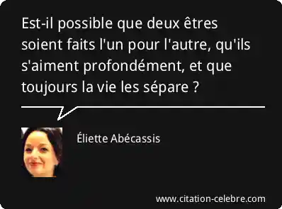 Est-il possible que deux êtres soient faits l'un pour l'autre, qu'ils s'aiment profondément, et que toujours la vie les sépare ?