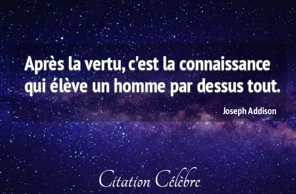 Après la vertu, c'est la connaissance qui élève un homme par dessus tout.