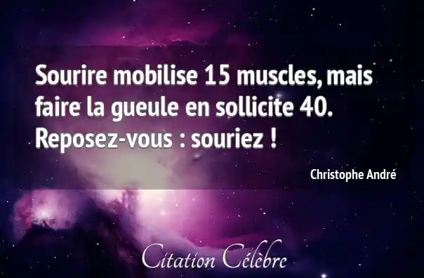 Sourire mobilise 15 muscles, mais faire la gueule en sollicite 40. Reposez-vous : souriez !