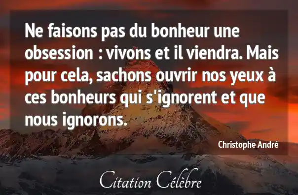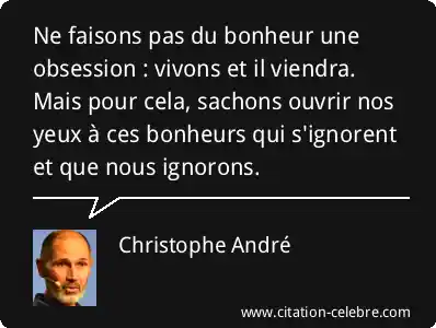 Ne faisons pas du bonheur une obsession : vivons et il viendra. Mais pour cela, sachons ouvrir nos yeux à ces bonheurs qui s'ignorent et que nous ignorons.