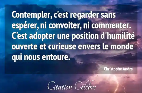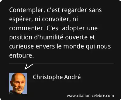 Contempler, c'est regarder sans espérer, ni convoiter, ni commenter. C'est adopter une position d'humilité ouverte et curieuse envers le monde qui nous entoure.