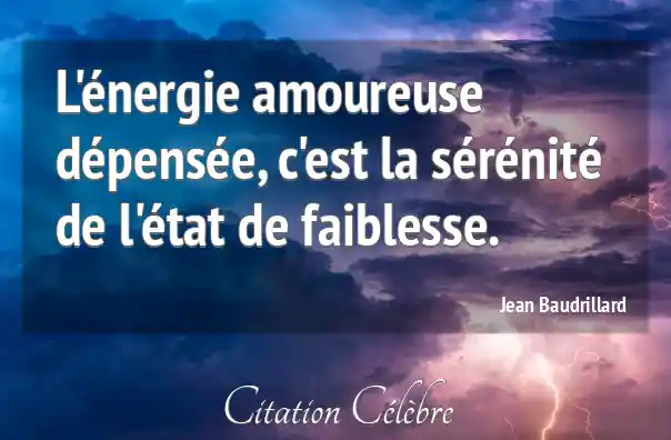 L'énergie amoureuse dépensée, c'est la sérénité de l'état de faiblesse.