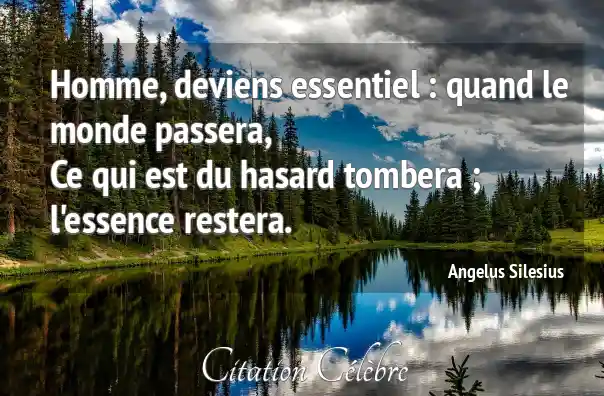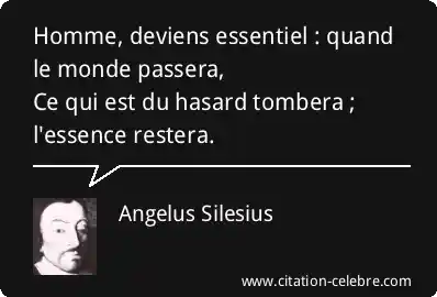 Homme, deviens essentiel : quand le monde passera, Ce qui est du hasard tombera ; l'essence restera.