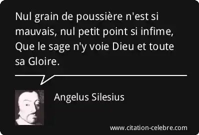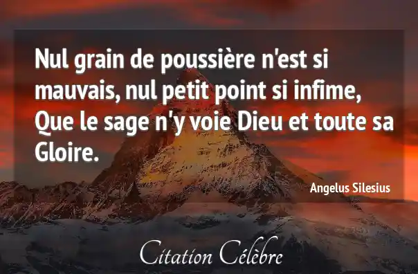 Nul grain de poussière n'est si mauvais, nul petit point si infime,Que le sage n'y voie Dieu et toute sa Gloire.