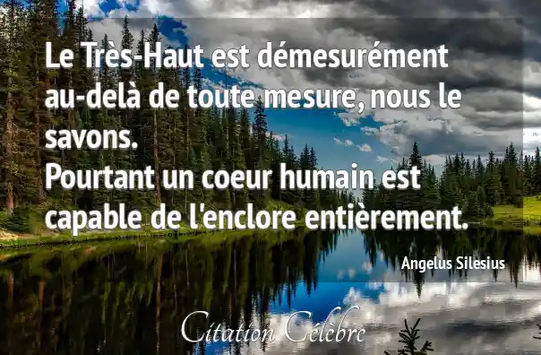 Le Très-Haut est démesurément au-delà de toute mesure, nous le savons.Pourtant un coeur humain est capable de l'enclore entièrement.