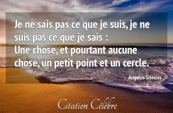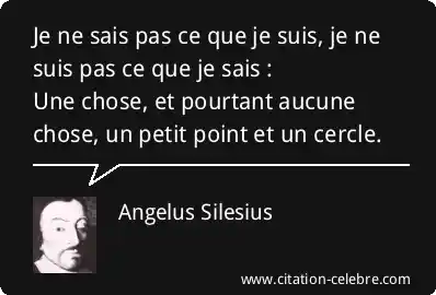 Je ne sais pas ce que je suis, je ne suis pas ce que je sais :Une chose, et pourtant aucune chose, un petit point et un cercle.