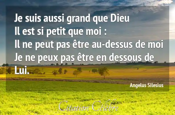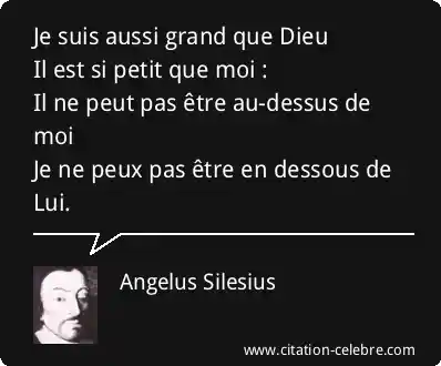 Je suis aussi grand que DieuIl est si petit que moi :Il ne peut pas être au-dessus de moiJe ne peux pas être en dessous de Lui.