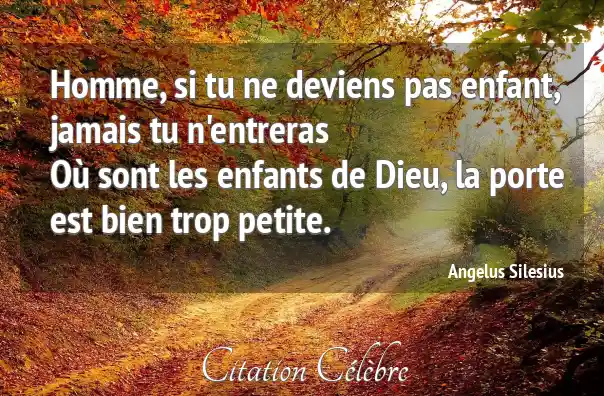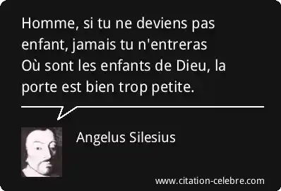 Citation Angelus Silesius dieu : Homme, si tu ne deviens pas enfant, jamais tu n'entrerasOù...