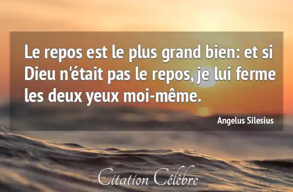 Le repos est le plus grand bien: et si Dieu n'était pas le repos, je lui ferme les deux yeux moi-même.
