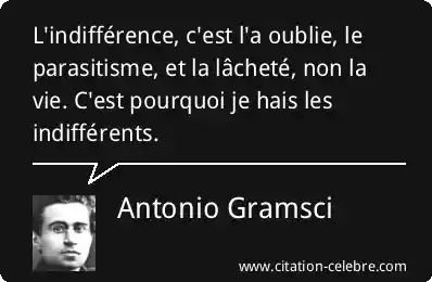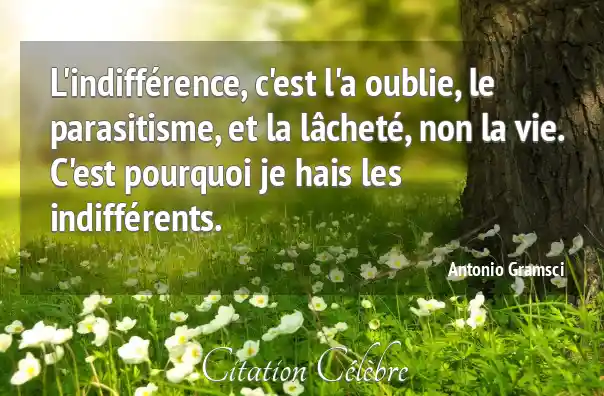 L'indifférence, c'est l'a oublie, le parasitisme, et la lâcheté, non la vie. C'est pourquoi je hais les indifférents.