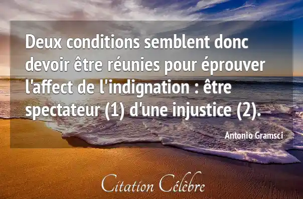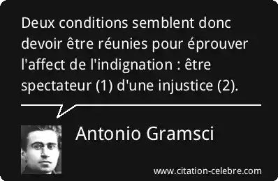 Deux conditions semblent donc devoir être réunies pour éprouver l'affect de l'indignation : être spectateur (1) d'une injustice (2).