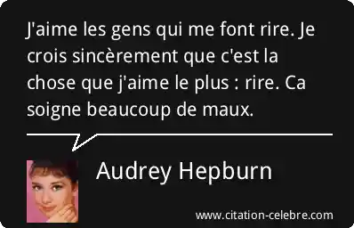 J'aime les gens qui me font rire. Je crois sincèrement que c'est la chose que j'aime le plus : rire. Ca soigne beaucoup de maux.