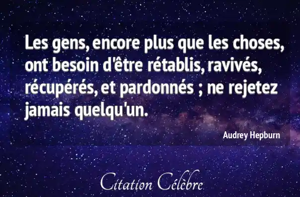 Les gens, encore plus que les choses, ont besoin d'être rétablis, ravivés, récupérés, et pardonnés ; ne rejetez jamais quelqu'un.