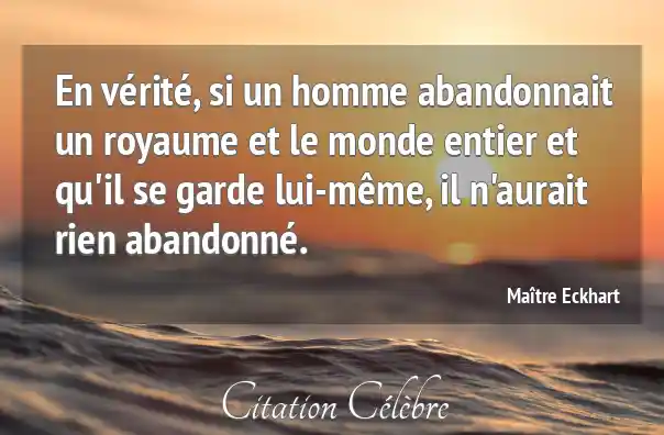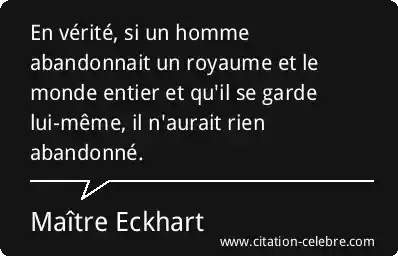 En vérité, si un homme abandonnait un royaume et le monde entier et qu'il se garde lui-même, il n'aurait rien abandonné.