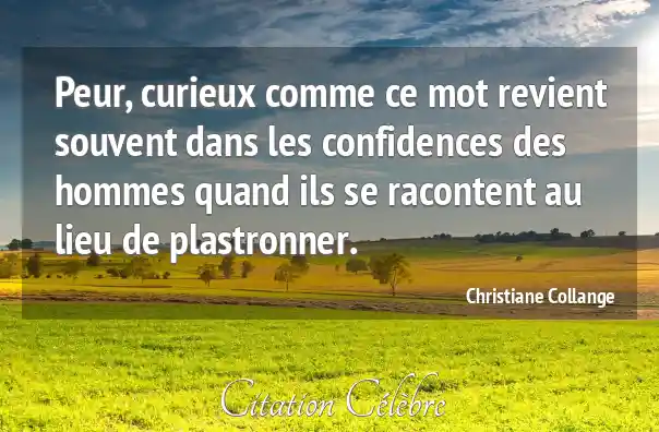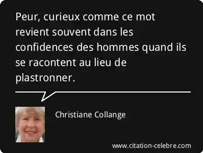 Peur, curieux comme ce mot revient souvent dans les confidences des hommes quand ils se racontent au lieu de plastronner.