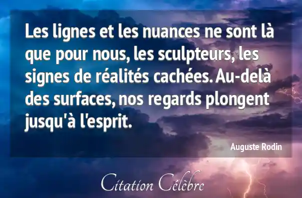 Les lignes et les nuances ne sont là que pour nous, les sculpteurs, les signes de réalités cachées. Au-delà des surfaces, nos regards plongent jusqu'à l'esprit.