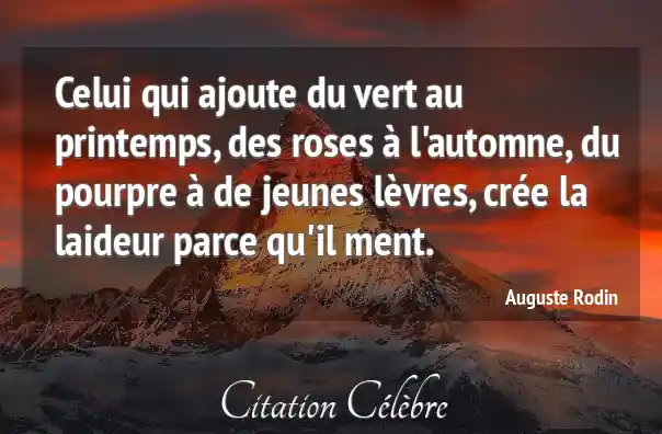 Celui qui ajoute du vert au printemps, des roses à l'automne, du pourpre à de jeunes lèvres, crée la laideur parce qu'il ment.