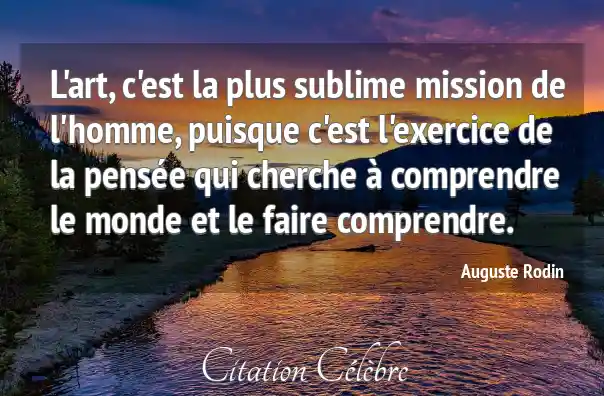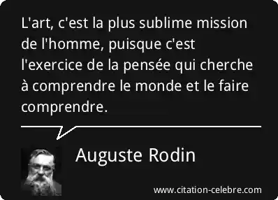 L'art, c'est la plus sublime mission de l'homme, puisque c'est l'exercice de la pensée qui cherche à comprendre le monde et le faire comprendre.