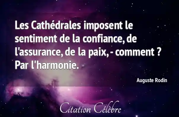 Les Cathédrales imposent le sentiment de la confiance, de l'assurance, de la paix, - comment ? Par l'harmonie.