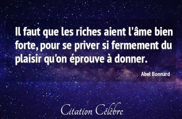 Il faut que les riches aient l'âme bien forte, pour se priver si fermement du plaisir qu'on éprouve à donner.