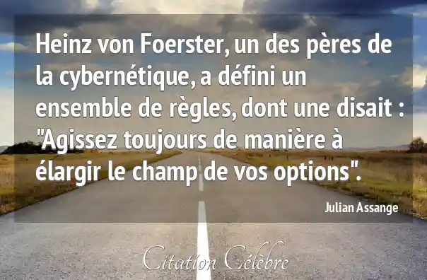 Heinz von Foerster, un des pères de la cybernétique, a défini un ensemble de règles, dont une disait : "Agissez toujours de manière à élargir le champ de vos options".