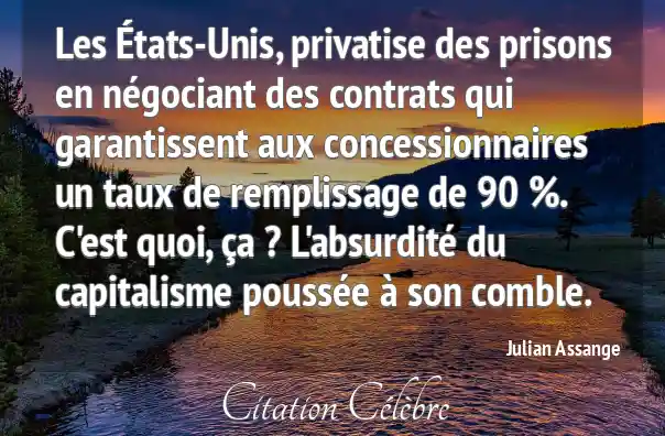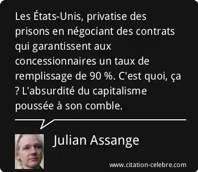 Les États-Unis, privatise des prisons en négociant des contrats qui garantissent aux concessionnaires un taux de remplissage de 90 %. C'est quoi, ça ? L'absurdité du capitalisme poussée à son comble.
