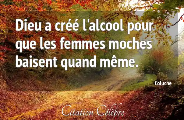 Dieu a créé l'alcool pour que les femmes moches baisent quand même.
