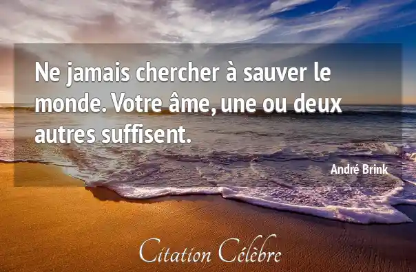 Ne jamais chercher à sauver le monde. Votre âme, une ou deux autres suffisent.
