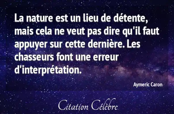 La nature est un lieu de détente, mais cela ne veut pas dire qu'il faut appuyer sur cette dernière. Les chasseurs font une erreur d'interprétation.