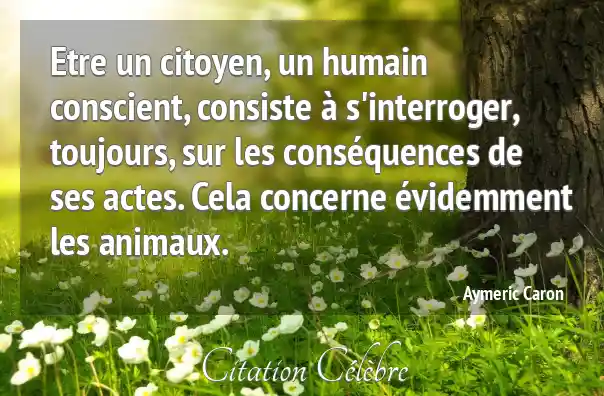 Etre un citoyen, un humain conscient, consiste à s'interroger, toujours, sur les conséquences de ses actes. Cela concerne évidemment les animaux.