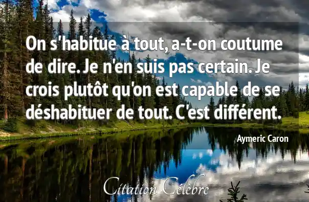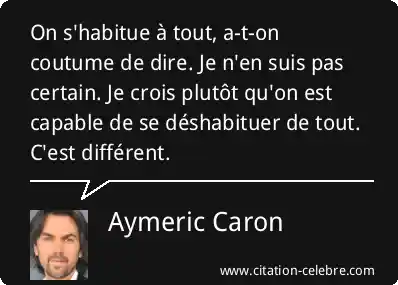 On s'habitue à tout, a-t-on coutume de dire. Je n'en suis pas certain. Je crois plutôt qu'on est capable de se déshabituer de tout. C'est différent.