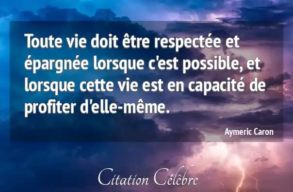 Toute vie doit être respectée et épargnée lorsque c'est possible, et lorsque cette vie est en capacité de profiter d'elle-même.