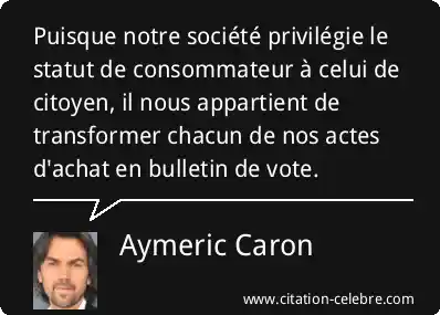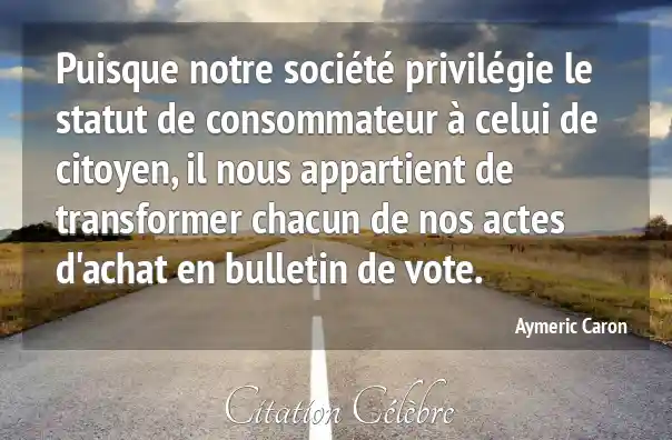Puisque notre société privilégie le statut de consommateur à celui de citoyen, il nous appartient de transformer chacun de nos actes d'achat en bulletin de vote.
