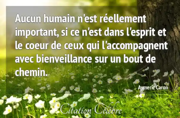 Aucun humain n'est réellement important, si ce n'est dans l'esprit et le coeur de ceux qui l'accompagnent avec bienveillance sur un bout de chemin.