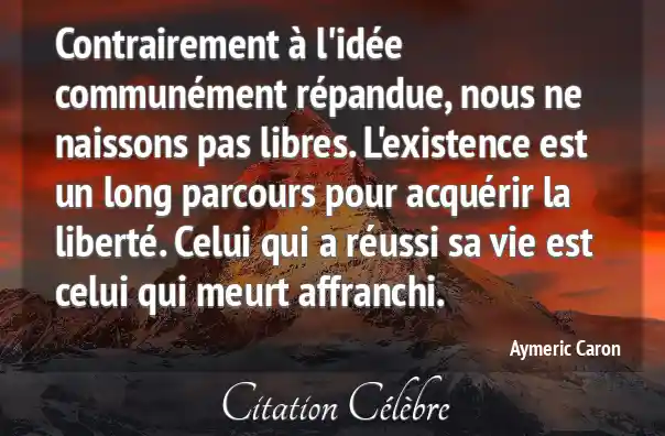 Contrairement à l'idée communément répandue, nous ne naissons pas libres. L'existence est un long parcours pour acquérir la liberté. Celui qui a réussi sa vie est celui qui meurt affranchi.