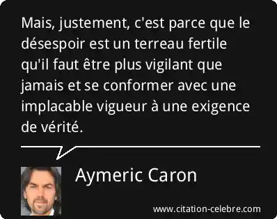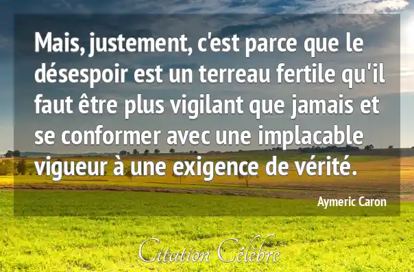 Mais, justement, c'est parce que le désespoir est un terreau fertile qu'il faut être plus vigilant que jamais et se conformer avec une implacable vigueur à une exigence de vérité.