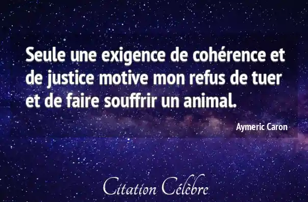 Seule une exigence de cohérence et de justice motive mon refus de tuer et de faire souffrir un animal.