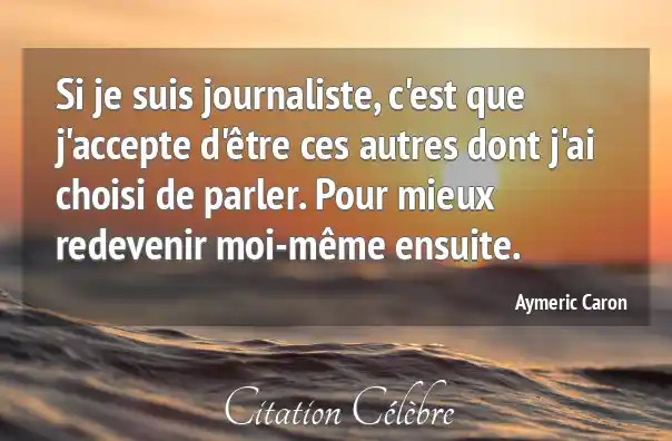 Si je suis journaliste, c'est que j'accepte d'être ces autres dont j'ai choisi de parler. Pour mieux redevenir moi-même ensuite.