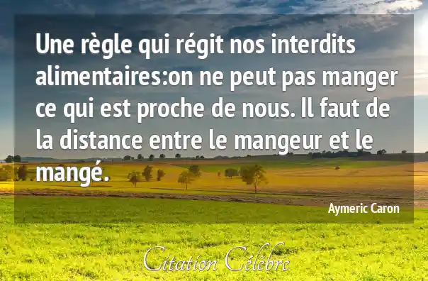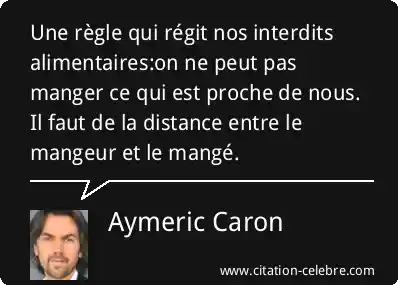 Une règle qui régit nos interdits alimentaires:on ne peut pas manger ce qui est proche de nous. Il faut de la distance entre le mangeur et le mangé.