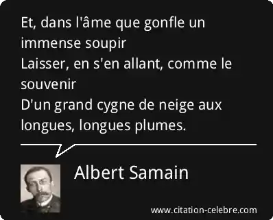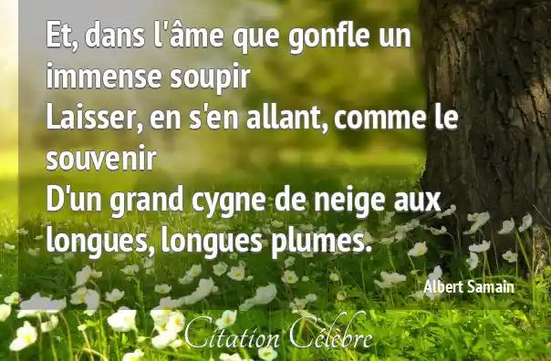 Et, dans l'âme que gonfle un immense soupirLaisser, en s'en allant, comme le souvenirD'un grand cygne de neige aux longues, longues plumes.