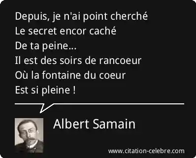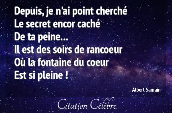 Depuis, je n'ai point cherchéLe secret encor cachéDe ta peine...Il est des soirs de rancoeurOù la fontaine du coeurEst si pleine !