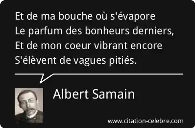 Citation Albert Samain coeur : Et de ma bouche où s'évaporeLe parfum des bonheurs derniers,Et...