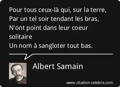 Pour tous ceux-là qui, sur la terre,Par un tel soir tendant les bras,N'ont point dans leur coeur solitaireUn nom à sangloter tout bas.