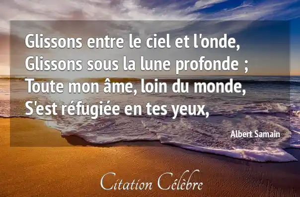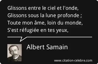 Glissons entre le ciel et l'onde,Glissons sous la lune profonde ;Toute mon âme, loin du monde,S'est réfugiée en tes yeux,